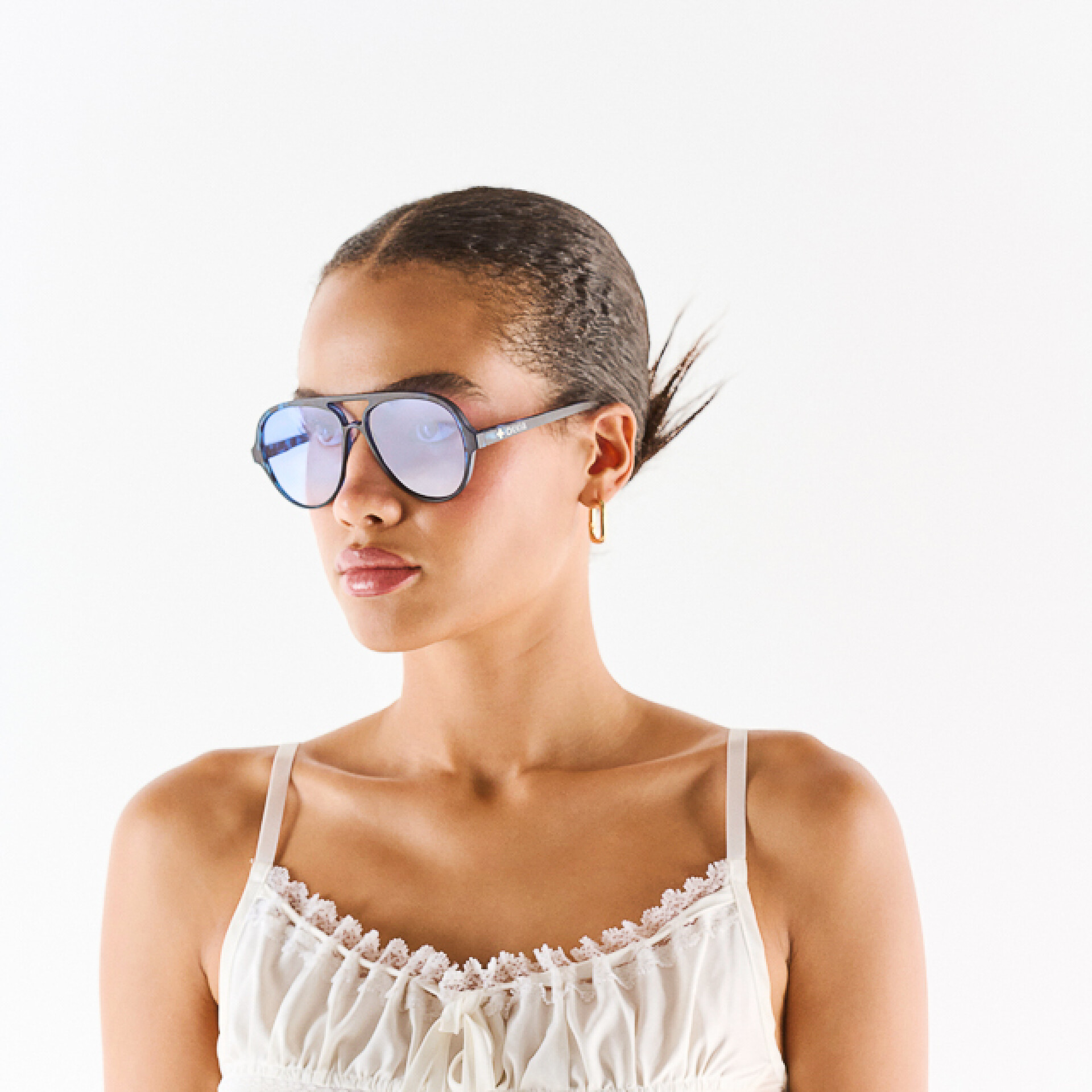 ALESSIO هو نظارة شمسية مُركبة مسبقاً على شكل قطرة مع إطار ذو لمسة ناعمة.